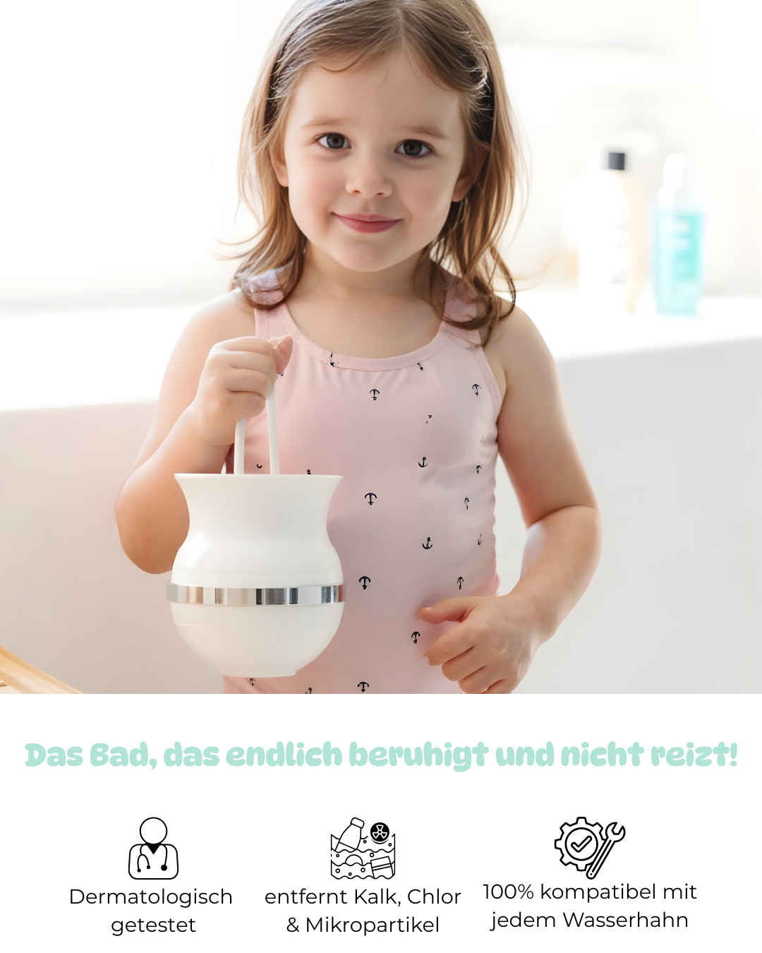 Mit Bubbly badet dein Kind endlich in sauberem, hautfreundlichem Wasser, das Juckreiz, Ekzeme und Rötungen spürbar reduziert.